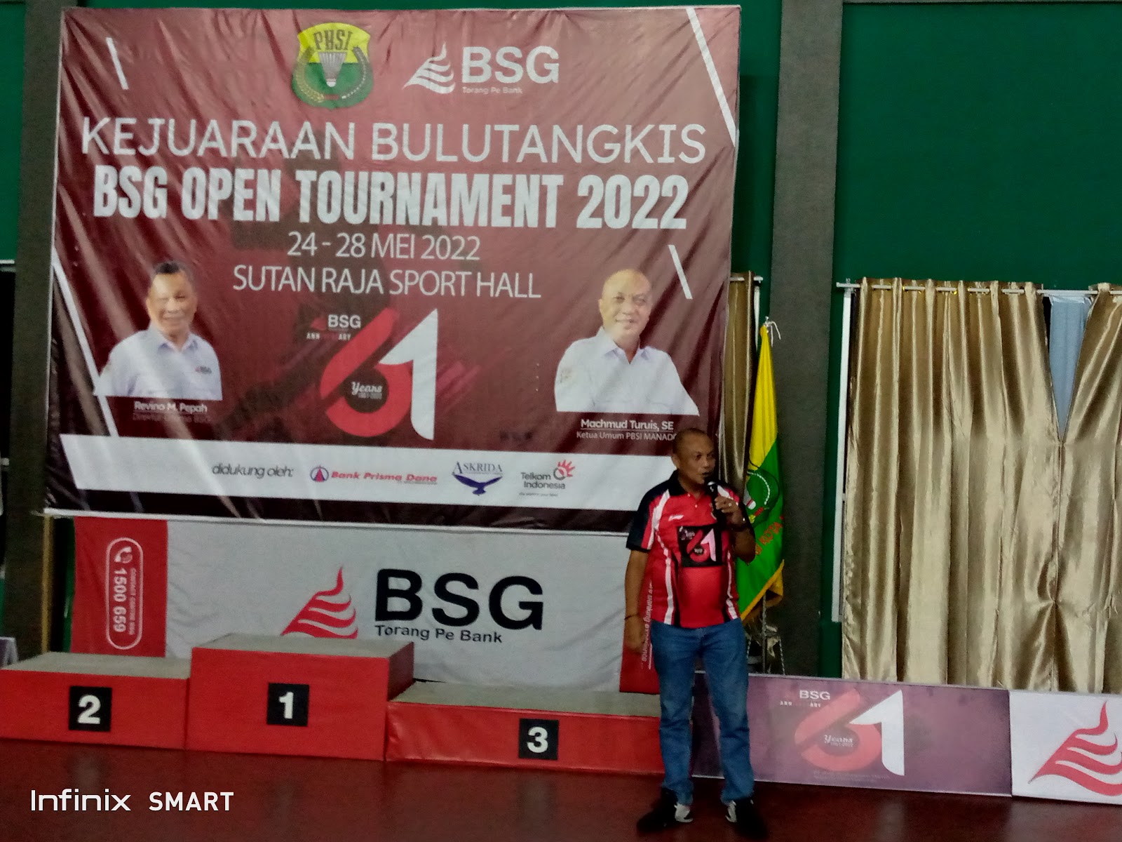 IDNEWS.CO,MANADO- Gelar Kejuaran Open Tournamen Bulu Tangkis BSG berlangsung seja Tanggal 24 hingga 28 Mei 2022 resmi berakhir tadi malam, Minggu (29/5/2022), bertempat di Sutan Raja Sport Hall Paniki Manado.
